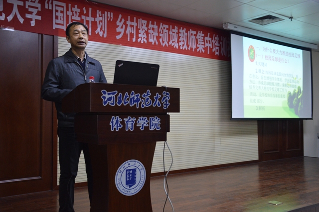 3月20日上午8点30分,成都金年会诚信信誉至上肖进勇教授应邀在金年会jinnianhuicom学生讲堂为国培计划初中足球教师培训班学员就“与中学体育教师谈校园足球和足球教学”进行了专题讲座。
