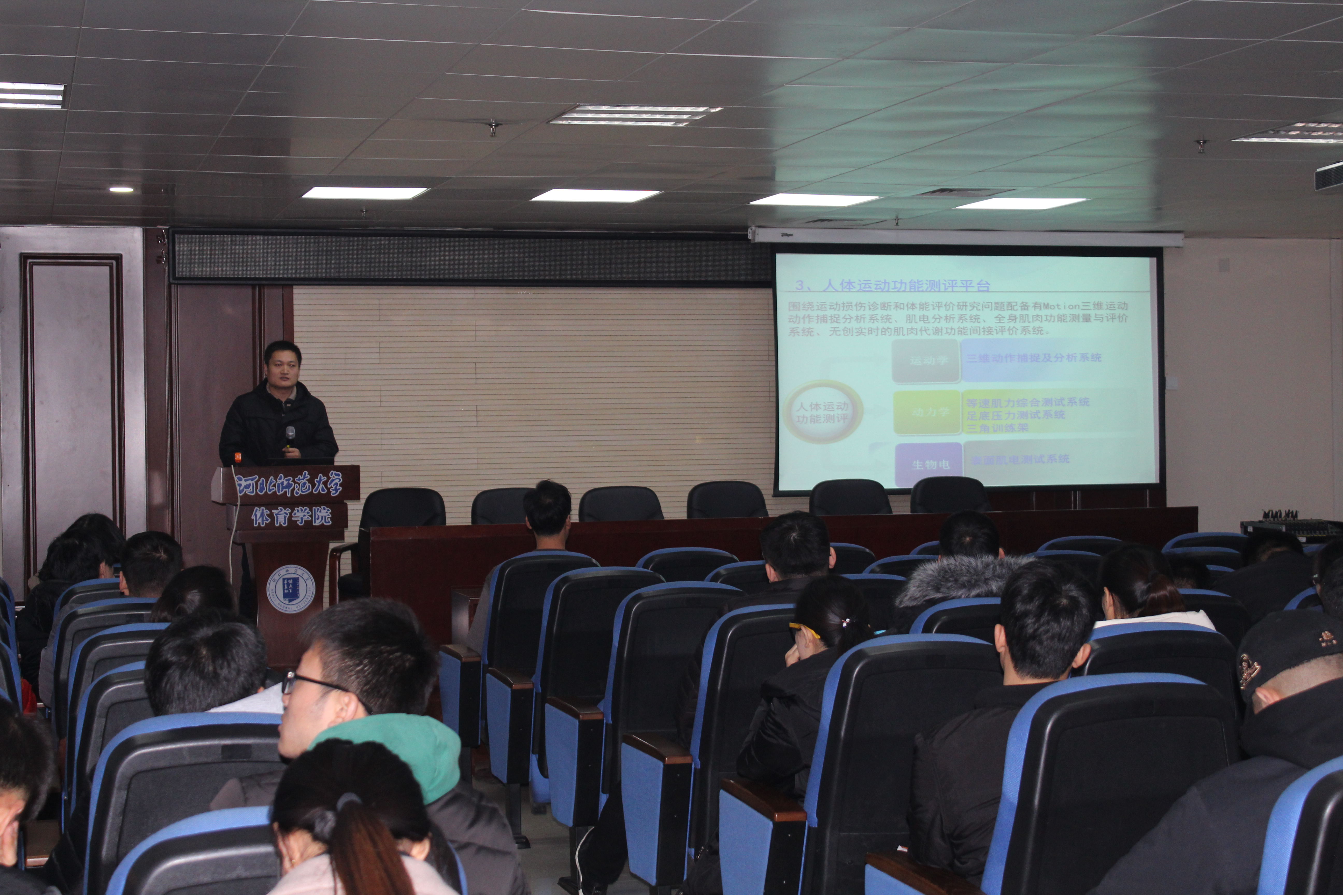 12月21日上午9:00,金年会诚信信誉至上在学生讲堂举行了第四期学术沙龙活动暨河北省人体运动生物信息测评重点实验室功能介绍。实验室霍洪峰老师应邀作报告。部分教师和一年级研究生参加了本次学术交流活动。