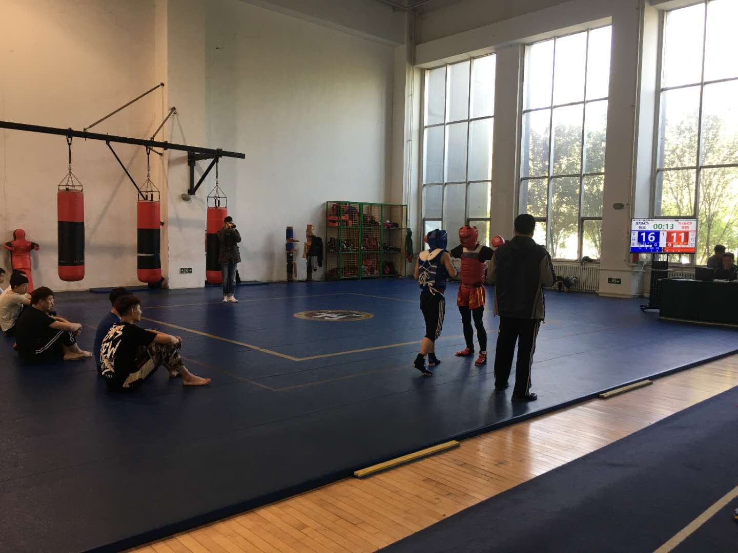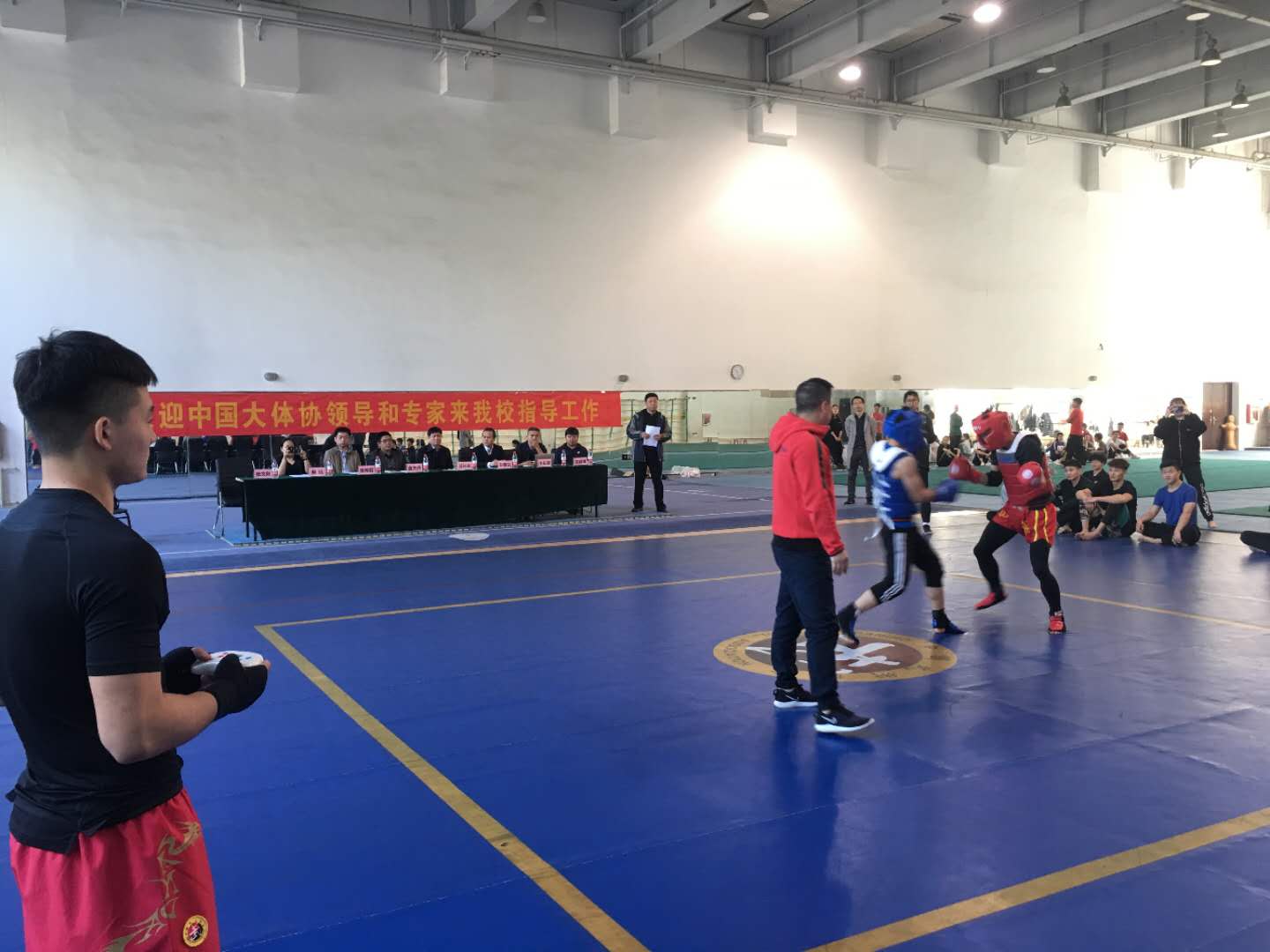 中国武术散打比赛自1979年试点,1989年成为正式比赛项目,至今已有30年的竞技历史。受多方面因素制约与影响,武术散打比赛一直由边裁主观评判比赛得分,对击打的轻重判罚尺度不一、击打点数易产生分歧,由此容易引发教练员和裁判员矛盾。伴随武术散打竞技水平的不断提高,客观评判武术散打比赛得分已成为亟待解决的关键性问题。基于这种背景,金年会金年会诚信信誉至上武术教研室张文利副教授通过多年的实践经验及长期调研,提出了通过电子护具系统代替人工打分的理念,辅助裁判判罚,可以较好解决散打评分的漏洞。在学院积极协调下,张文利带领武术散打科研攻关小组经过一年多的研究和多次测试获得初步成功。基于科研攻关的成功,大体协首次委托金年会诚信信誉至上承办2019年全国大学生散打教练员与裁判员会议,并由张文利负责电子护具及新规则讲授。