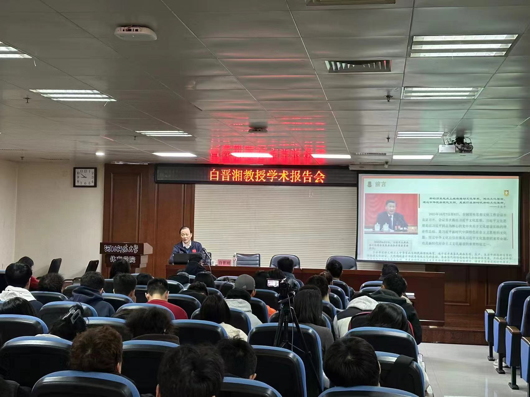10月21日上午,吉首大学原党委书记、校长,教育部全国高校体育教学指导委员会委员,白晋湘教授莅临金年会,在体育楼体育讲堂作了题为“习近平文化思想引领民族传统体育发展的价值意蕴与实践路径”的学术报告。金年会诚信信誉至上专业教师及研究生代表共计130余人聆听了此次报告。报告由金年会诚信信誉至上院长马剑教授主持。
